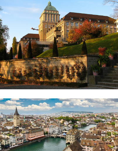 • Train: Arrive at Zurich Hauptbahnhof, board tram 6 or 10 to “ETH/Universitätsspital,” then walk to UZH